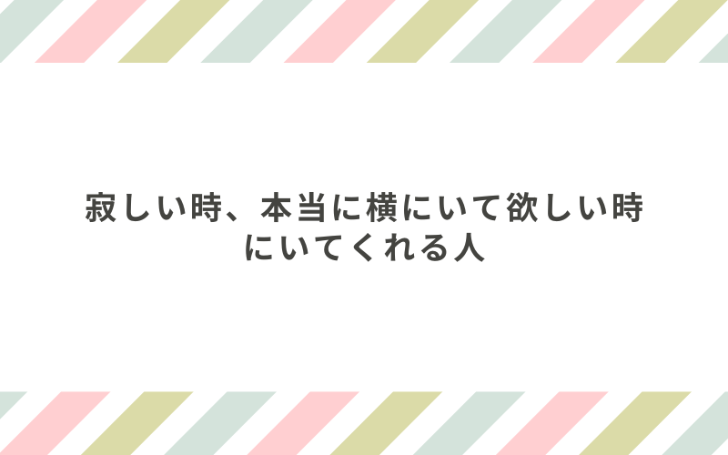 寂しい時、本当に横にいて欲しい時にいてくれる人